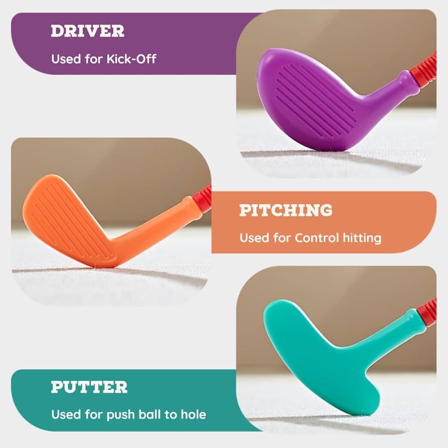 - Realistic design and like a mini golf field, kids can learn more about golf and help your kids practice golf, enjoy hours of fun. Improve judgment, hand-on coordination, thinking skills.