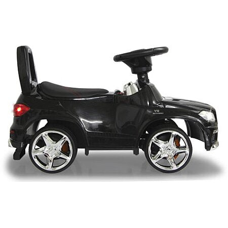 The officially licensed Mercedes-AMG GL 63 offers safe driving pleasure thanks to its stable and lovingly designed body. The low seat height of 250 mm and the specially designed anti-tip device at the rear of the sliding car also contribute to this. With its easy-to-handle steering wheel and horn, real headlights, grille and rims, inspired by the original, Mercedes is the ideal vehicle for the smallest explorers, inside and outside.