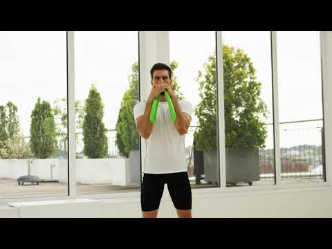 Thigh trainer with a sturdy steel spring and foam-coated handles (steel/NBR/PE) for exceptional training comfort